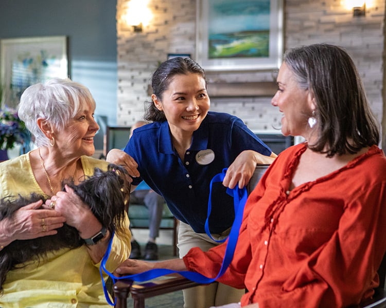 Daily programs include fitness classes, pet therapy, music and social events.