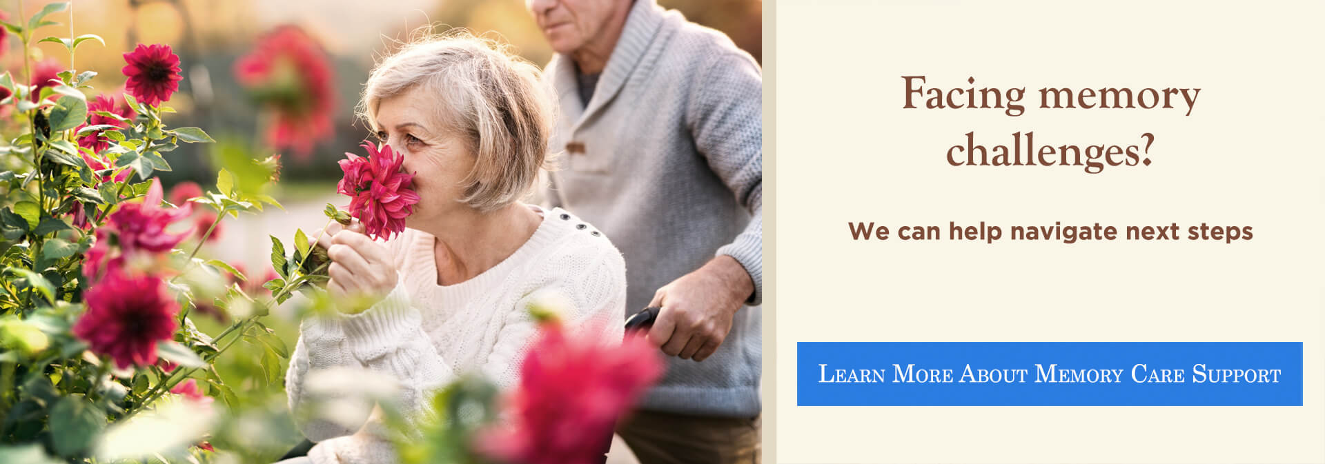 Memory Care Secured, specialized care for people living with Alzheimer's or dementia. Staff trained in cognitive impairment, with higher staff-to-resident ratios and an environment designed to reduce confusion and wandering risk.