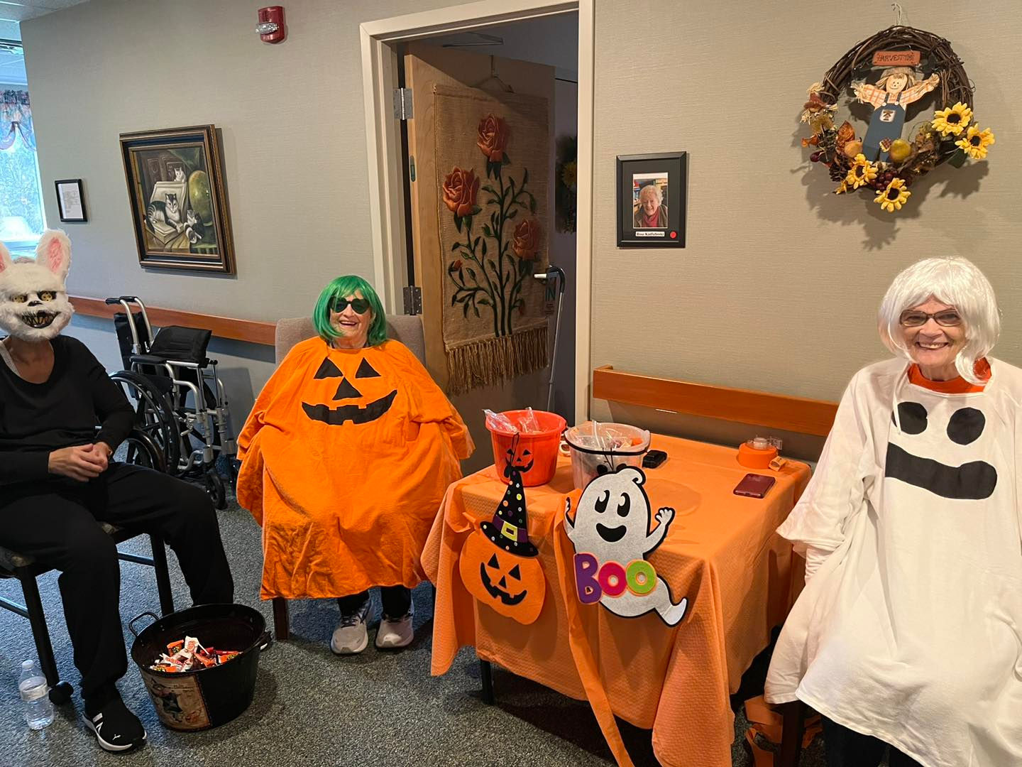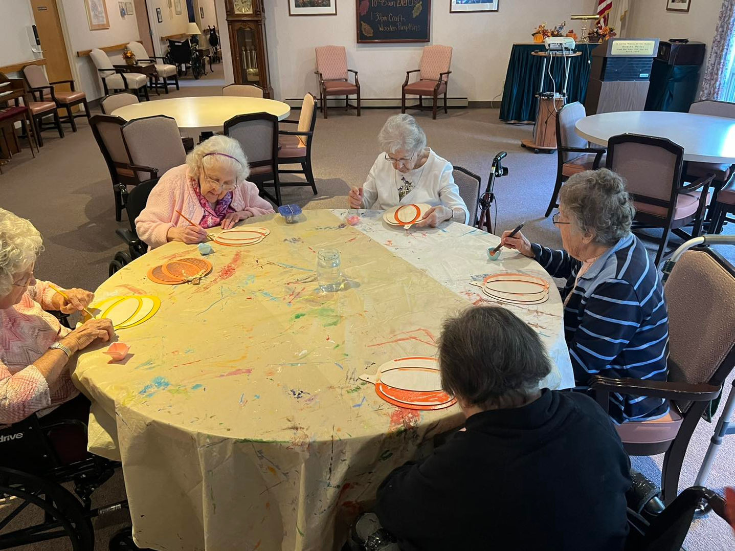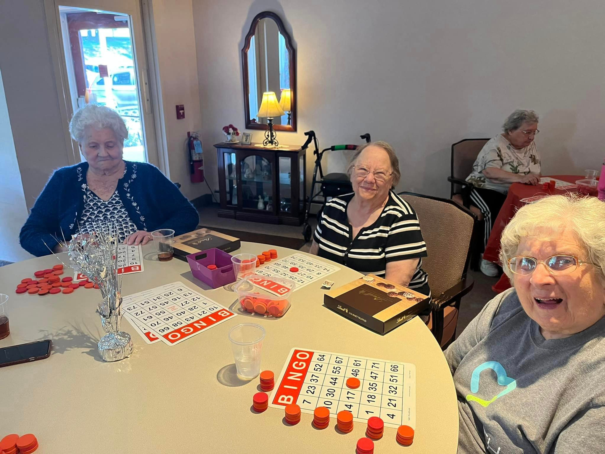 Residents receive three meals daily, a bedtime snack, and assistance with dining as needed.